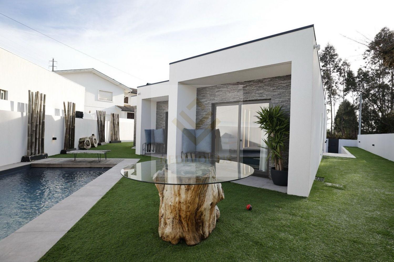 Linda Moradia T3 com piscina Localizada em Santa Maria da Feira, esta moradia térrea apresenta uma arquitetura encantadora, com quatro frentes que permitem uma excelente entrada de luz natural e uma circulação de ar refrescante. O exterior é adornado por um jardim bem cuidado que complementa a beleza da propriedade. Ao entrar na casa, somos recebidos por uma espaçosa sala em open space, onde a área de estar se funde harmoniosamente com a área de jantar e a cozinha. Este design contemporâneo cria um ambiente acolhedor e convidativo, ideal para momentos de convívio em família ou entre amigos. A cozinha está equipada com todos os aparelhos modernos e oferece bastante espaço de armazenamento, permitindo preparar deliciosas refeições enquanto se desfruta da companhia dos outros na sala de estar adjacente. A moradia dispõe de três quartos confortáveis, um deles é uma suite, cada um com espaço suficiente para arrumação e decoração personalizada. As grandes janelas em cada quarto oferecem vistas deslumbrantes para o exterior e garantem uma atmosfera luminosa e arejada. O destaque desta propriedade é, sem dúvida, a piscina, localizada no amplo jardim, que proporciona o local perfeito para relaxar e descontrair nos dias quentes de verão. É o espaço ideal para momentos de lazer em família ou para receber convidados em eventos ao ar livre. Com uma localização privilegiada em Santa Maria da Feira, esta moradia térrea oferece o equilíbrio perfeito entre conforto, elegância e lazer, sendo o lugar ideal para criar memórias inesquecíveis. Se esta é a casa dos seus sonhos não perca esta oportunidade e marque a sua visita!